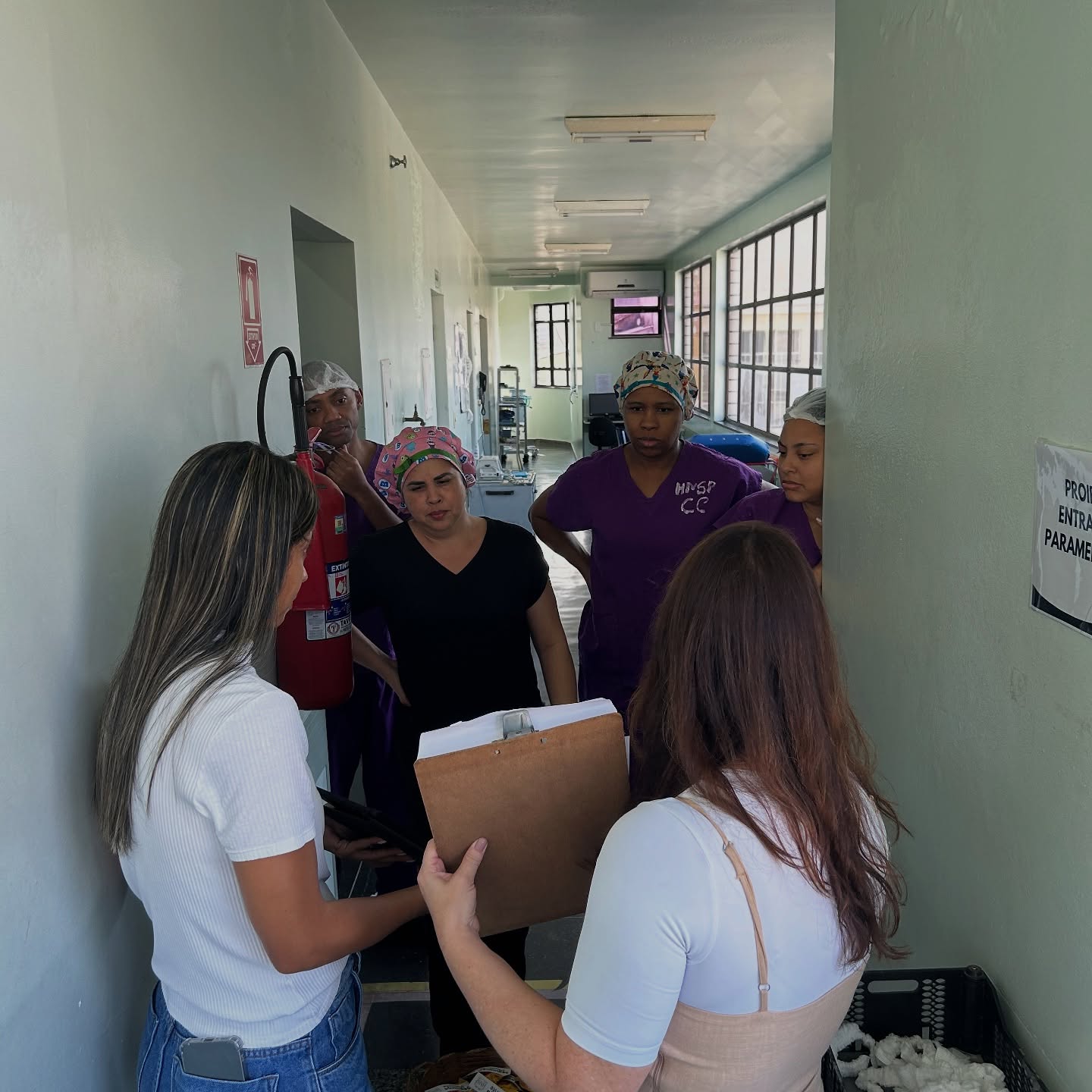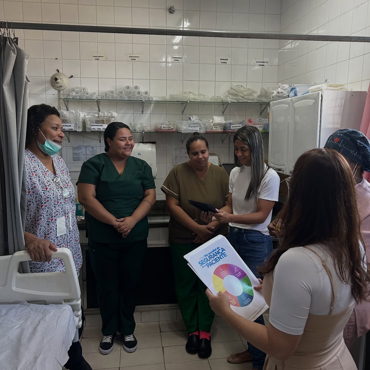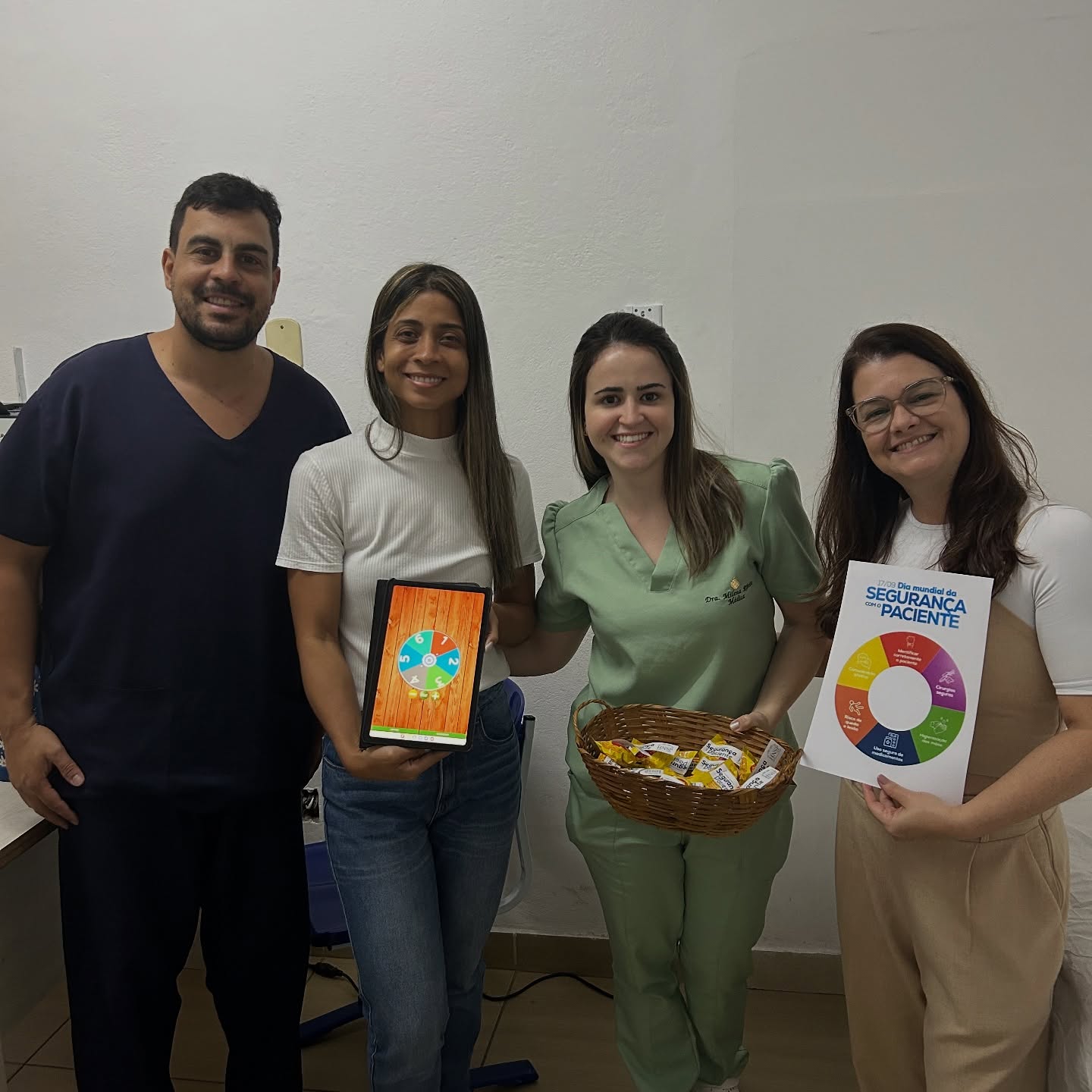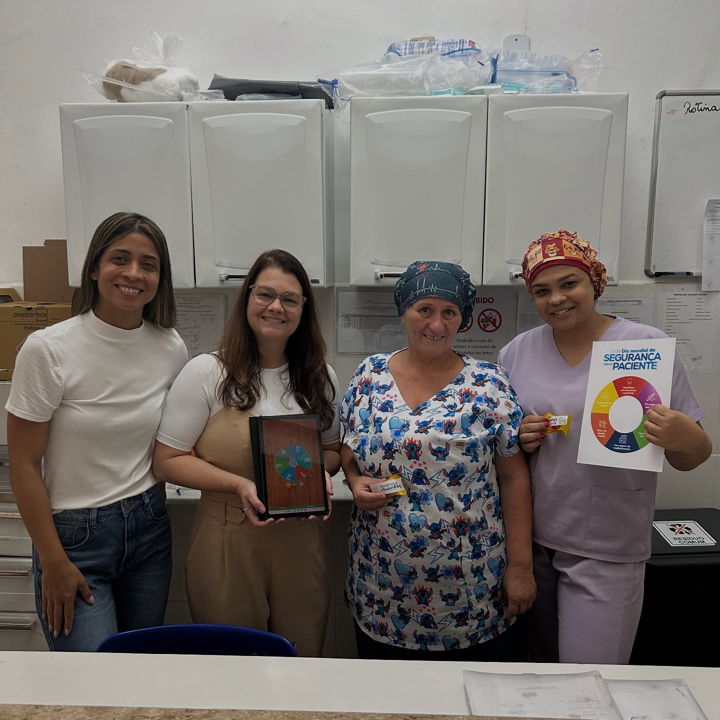 A atividade foi conduzida pela Irene Trancoso (Enfermeira da Qualidade) e pela Lucíola Oliveira (Técnica de Segurança do Paciente), que orientaram e incentivaram os colaboradores a responder perguntas sobre o tema.